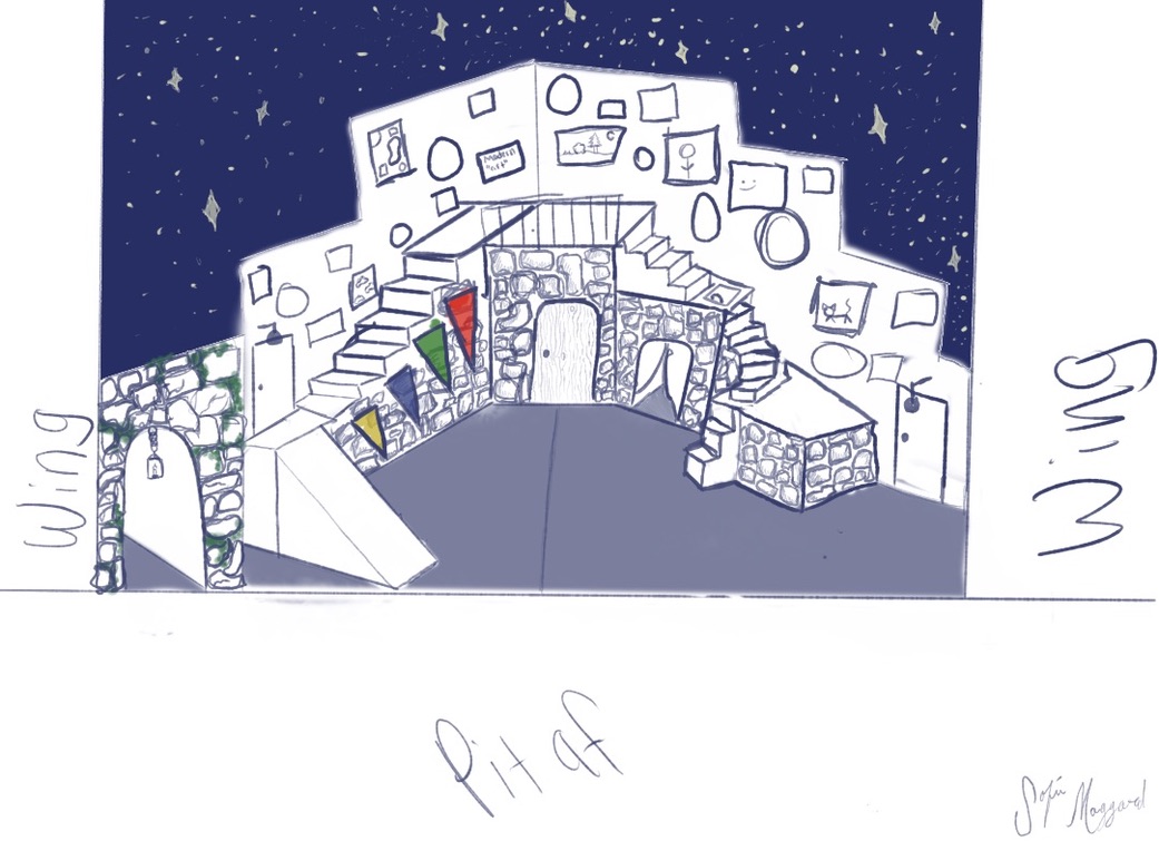 Sofia designed sets, facilitated construction, and was the charge artist for multiple productions. She was awarded Outstanding Student Set Design by The Miami Valley High School Theater Awards for her work in Puffs (A Young Wizards One Act Edition).